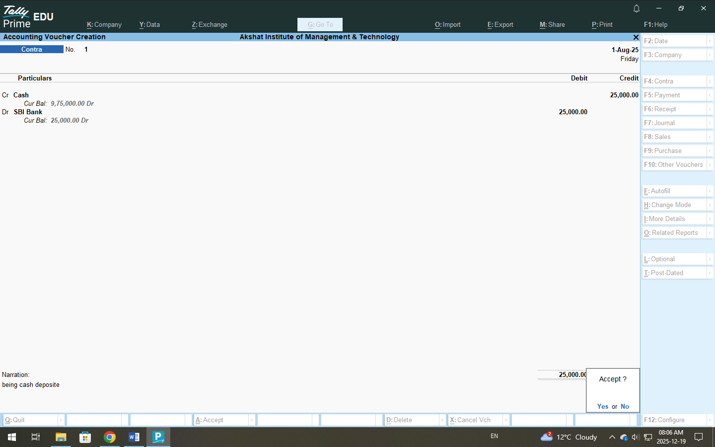 - Contra Voucher (F4)