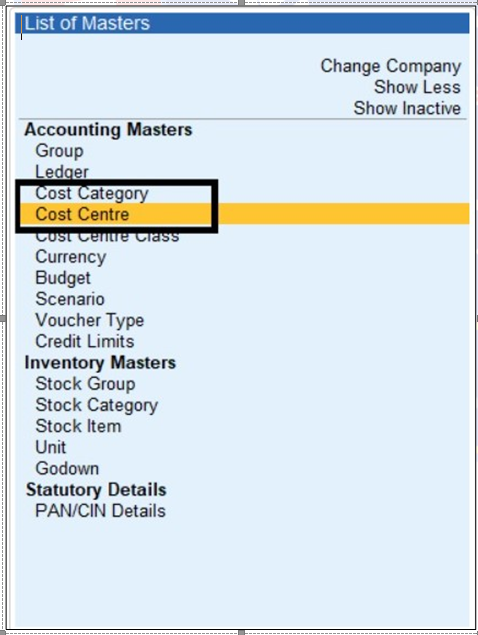 How to Activate Cost Centre and Cost Category