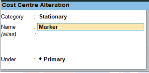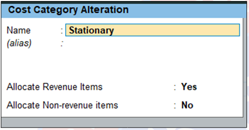 Gateway of Tally → Create → Cost Category