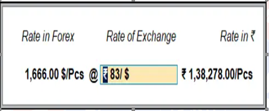 नोट- Rate फील्ड मे $ सिंबल के साथ वैल्यू बिना स्पेस दिए लिखेंगे जैसे- $116, इसके बाद जो पॉपअप विंडो ओपन होगी वहाँ से रेट्स को चेंज भी किया जा सकता है अगर रेट्स में कोई परिवर्तन हुआ है।